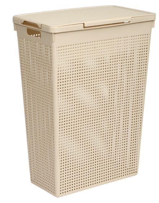 Корзина для грязного белья в ванную пластиковая лофт узкая с крышкой большая 50л VIOLET 5650020 бежевая