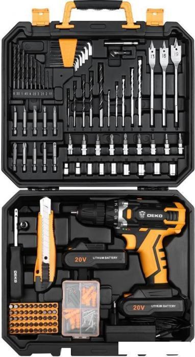 Дрель-шуруповерт с набором инструмента оснастки Deko DKCD20FU-Li SET 193 063-4179 (с 2-мя АКБ, кейс)