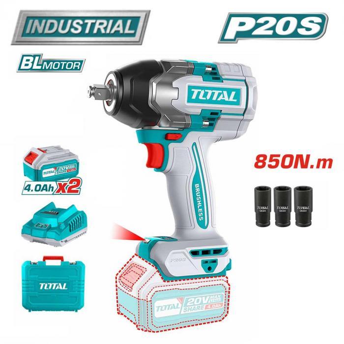 - TOTAL TIWLI2085 – новое поколение аккумуляторных ударных гайковертов с максимальным крутящим моментом 850Нм на закручивание и до 1000 Нм на откручивание !