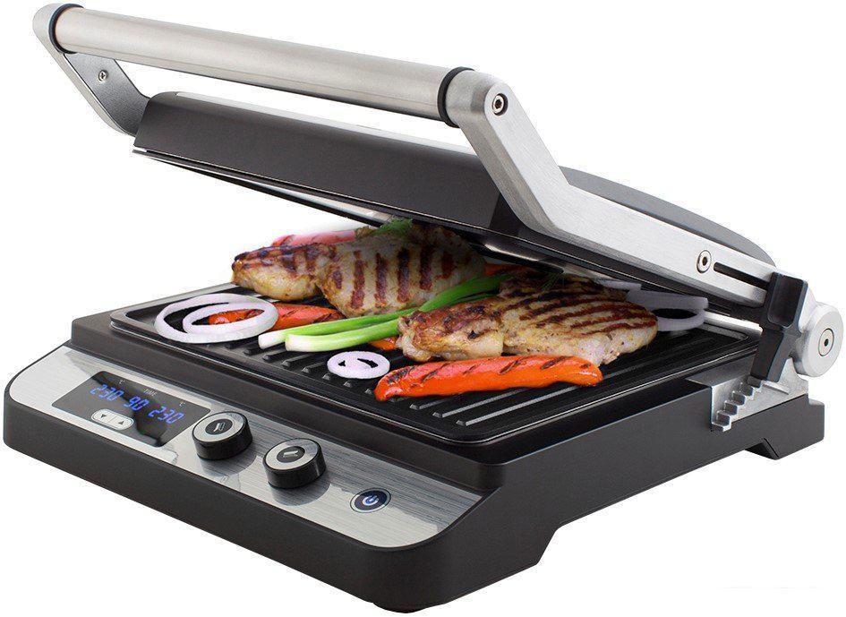 | Контактный электрический гриль Kitfort KT-1636 позволяет приготовлять стейки, овощи, рыбу, бутерброды, гренки и многое другое. Конструкция «3 в 1» позволяет использовать гриль в трех режимах. В двухстороннем режиме гриль закрывается крышкой, и продукты готовятся одновременно с двух сторон. В режиме с приподнятой крышкой верхняя крышка нависает над готовящимися продуктами, но не касается их. Это бывает необходимо в случае, если требуется двусторонний нагрев, но куски продуктов имеют неодинаковую толщину, либо если требуется исключить давление крышки на них. Например, в этом режиме можно приготовить бутерброд или разогреть пиццу. В одностороннем режиме крышка гриля откидывается на 180°. Гриль превращается в большую жаровню, и для приготовления можно использовать обе поверхности. |