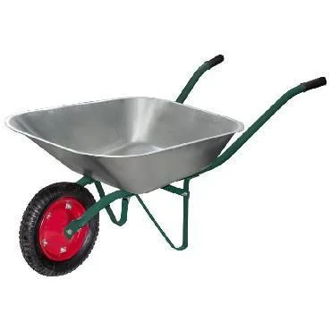 Тачка садовая WB 4307 в т/у. Грузоподъемность 130кг, корыто оцинкованное объем 65л, толщина 0,6мм, колесо пневматическое d 330мм, рама d 32мм трубы, толщина трубы 1,4мм, упакована в термоусадку.