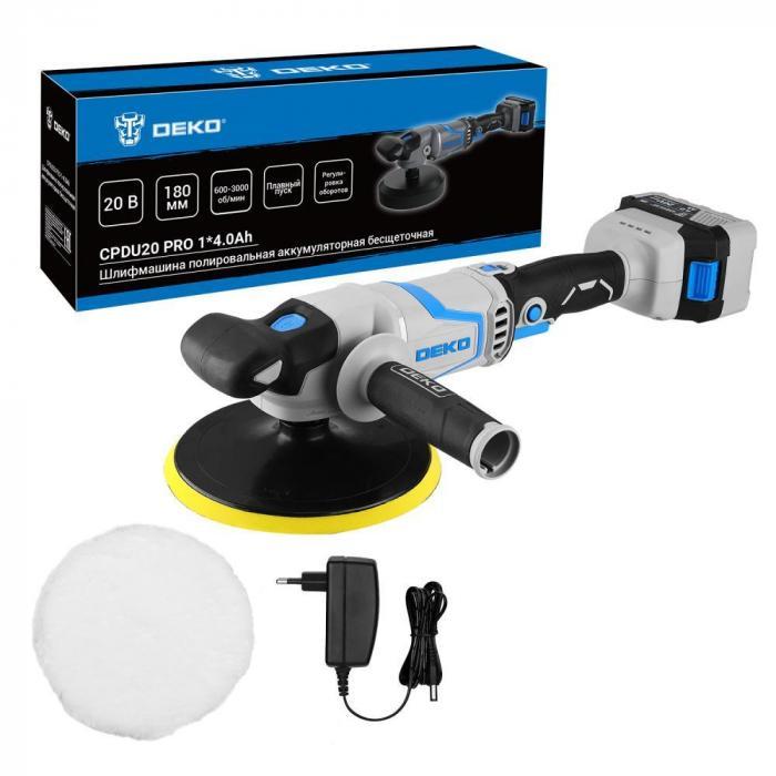 - Полировальная аккумуляторная DEKO CPDU20 PRO 1*4.0Ah обеспечивает качественную полировку и шлифовку различных лакокрасочных, полимерных и прочих покрытий.