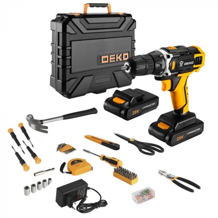 - Аккумуляторная дрель Deko DKCD20FU-Li используется при строительных, слесарно-монтажных работах. Помогает быстро высверливать отверстия нужного диаметра как на деревянной, так и металлической поверхности, быстро вкручивать или извлекать крепеж.