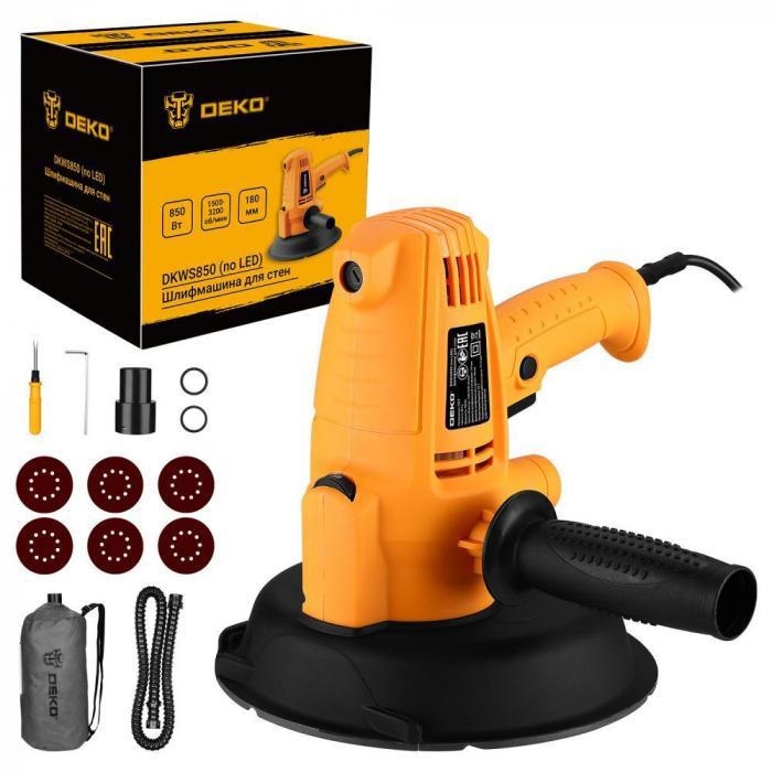 - Шлифмашина для стен DEKO DKWS850 предназначена для шлифовки больших поверхностей из древесины, пластмассы и металлических материалов, а также окрашенных поверхностей.